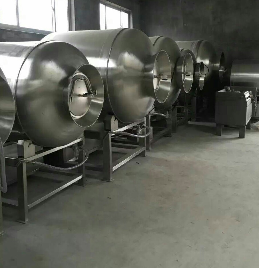 将产品从入料口装入,(可配提升上料机),卡上盖子,先抽真空,再进行滚揉、腌制,出料。抽真空、滚揉、腌制、出料在控制系统设计好时机,可自动进行,正转滚揉,反转出料。