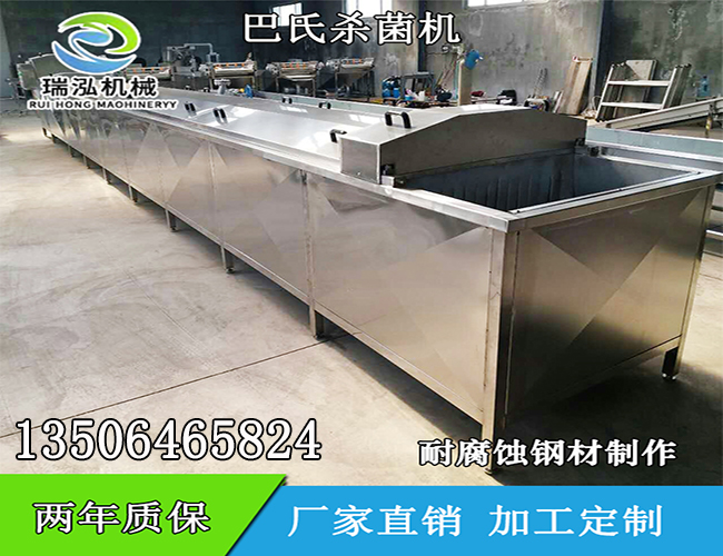 金针菇杀菌机设备介绍:整机采用耐腐蚀钢材,温度、速度、可根据工艺要求设定,该机运行平稳,不锈钢带强度高伸缩性小,不易变形,易保养,操作机维护方便等特点,与目前土法(杀菌池)相比劳动轻度低,人力少,自控化程度高,温度可在98°内自动调控,上下层水温差较小,产品质量容易控制,是蔬菜食品加工行业的理想设备。在食品、饮料、制药等行业中,要求对一些包装完毕的产品进行水浴灭菌。