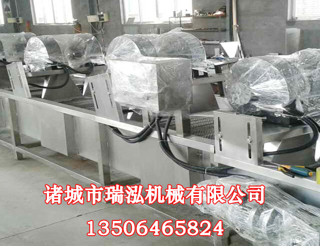 清洗过后的蔬菜表面会挂载大量的水珠,需采用常温风干的方式将其去除,我公司生产的连续式风干机能很好的解决这一问题。