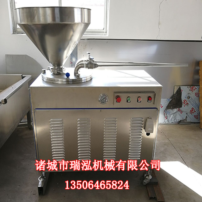 随着各种肠类进入我们的生活,生产加工肠类走向热门化,灌肠机既节省了时间,又提高了工作效率,接下来小编给大家介绍一下灌肠机的工作原理,液压灌肠机是加工肠类制品的必备设备,能灌制大、中、小各种规格的肠制品,液压灌肠机是利用液压泵站做动力源推动液压油缸工作,采用螺旋推进器运转,活塞式液压驱动,调准工作压力后在液压缸的作用下,使桶内的物料产生压力后将料挤出,上部设有贮料斗,蝶形阀;可实现不掀盖连续灌制。