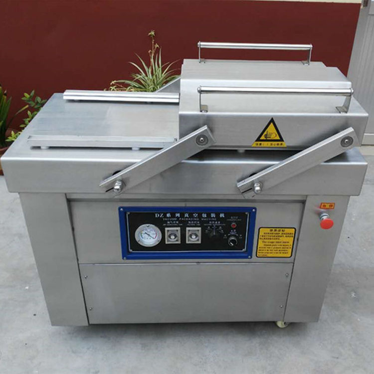 双室真空包装机是利用一个真空盖在两个真空室上相互交替工作,从而达到提高工作效率的目的,当一个真空室在抽真空时,另一个真空室可以摆放包装物;双室真空包装机是为真空盖摆动设计的省力装置,大幅度降低了操作人员的劳动强度。