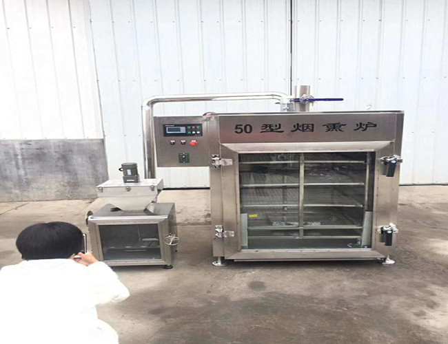 烟熏炉主要的构成分别是箱体,发烟箱这两部分组成。箱体采用304部锈钢制作而成,其主要的核心技术是风力循环,风力循环越好,烟熏效果越好,产品品质越好。温差的大小决定设备的成熟度跟产品的品质。简单的介绍一下烟熏炉的箱体。烟熏炉箱体由管道,加热盘,风机,风箱,电机,挂车组合而成,内有温湿度感应探头。可以随时观察炉内温湿度。对炉内的温度进行工艺的控制。烟熏炉根据型号配备烟熏挂车。现在越来越多的旋转门,落地窗等等都采用全玻璃制作,不仅外形美观而且方便快捷的看到事情的变化。外置发烟炉采用全透明式玻璃窗,并设有烟量可调风门,过滤网可防止烟灰进入管道。烟道管路短,污染少,拆洗方便。大限度优化箱体内部气流循环状态,确保整个箱体物料加工过程中可控、均匀,达到了低耗、高速的产出。我们研发人员根据客户的加工工艺的不同,把烟熏炉的发烟方式设计为了糖熏和木熏两种发烟方式,烟熏炉可以豆干,熏鸡,熏鱼,熟食,素鸡等等产品。可以提供糖熏,木粉熏都是可以的。中间不用人工操作,会一个工艺结束后,自动跳转下个工艺。烟熏后食品颜色更好看,烟熏风味更香,代替传统烟熏,达到环保效果。