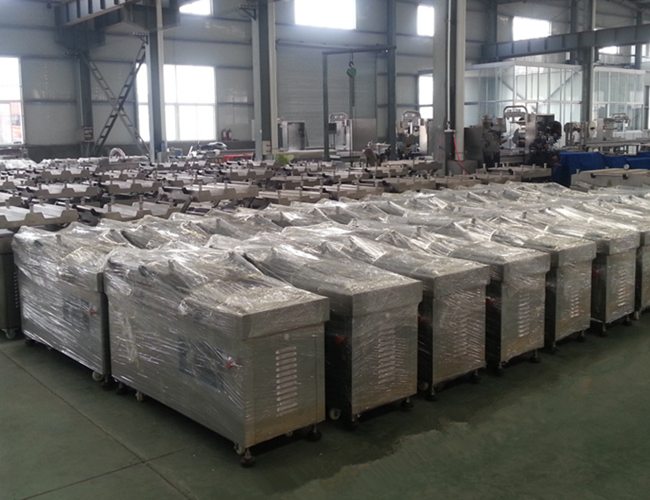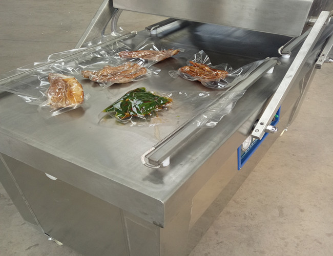 3、压下机盖,面板上抽气(真空)指示灯亮.真空泵开始抽气,机盖即被自动吸住,抽真空旋钮可根据包装要求调节真空度高低,调节时,视刻度由低至高,幅度要小.