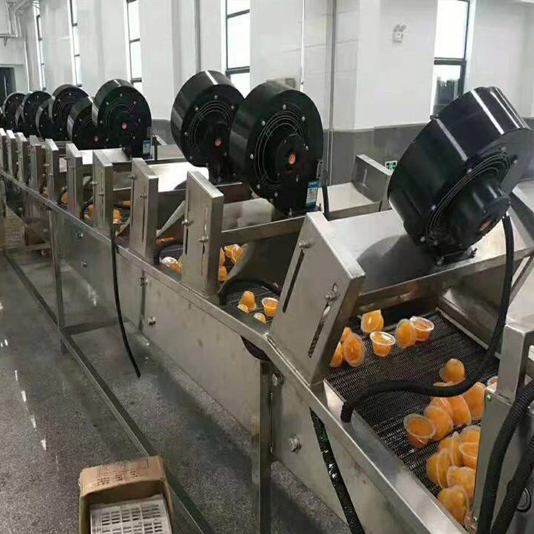 风干机是根据水果蔬菜 食品 医药行业加工生产中清洗 包装后产品表面残留水滴不能立即包装而研制的一款快速风干水分机器, 实现连续作业,清洗杀菌后的产品经输送带进入风干机强流风快速吹干干燥,进入下一步生产包装封箱,即简化了工艺流程,提高了工作效率