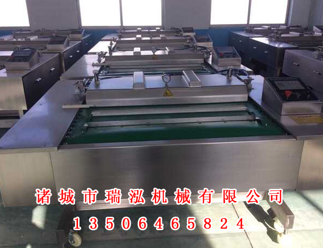 真空包装机的适用行业范围很广泛,但是要说使用多的应该是食品行业了,瑞泓多年来针对食品行业各种产品大米、熟食、茶叶等不同产品设计出各种不同类型的真空包装机械,各有所长。瑞泓为您推荐一种很适合小袋食品包装的设备—连续式真空包装机。休闲食品使用真空包装可使产品保持干燥,防止发霉、细菌繁殖、有效延长食品本身保质期。连续式真空包装机采用链条传动、自动摆盖,可连续输出产品,整机可倾斜四种角度,可满足小袋食品的各种包装要求,是瑞泓畅销的一种机械设备,瑞泓自研究这类机械至今第三代连续式真空包装机年前刚刚上市。使用瑞泓这款机械设备的典型客户主要有武汉如意生鲜、武汉国灸科技、建德红腾生物、大连麦花、陈小五食品、重庆味之道食品、深圳英利华贸易等等.